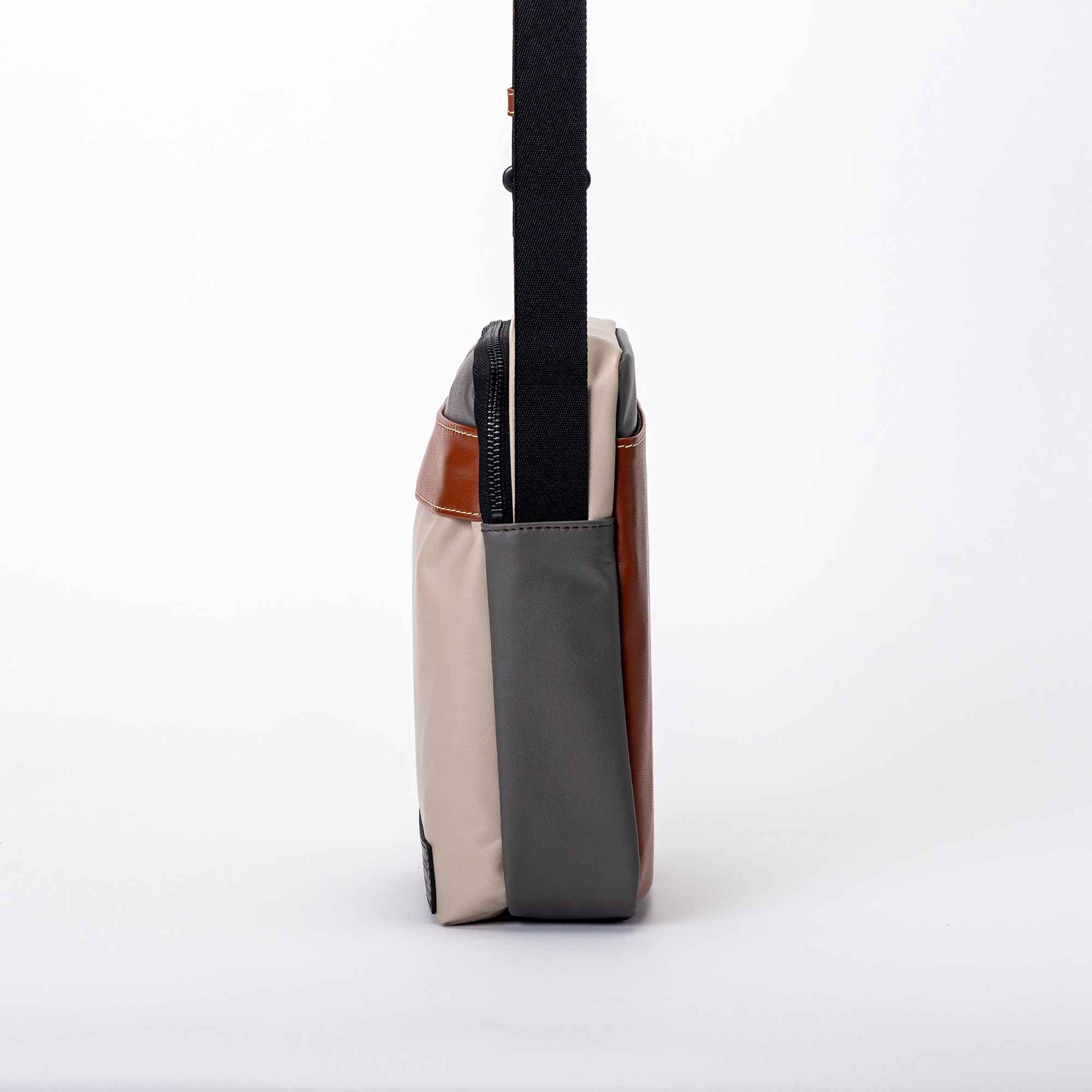 身体に沿うショルダーストラップは長さ調整ができ、肩掛け・斜め掛けのどちらにも対応。必要なものだけを、美しく持ち歩くためのミニマルショルダーバッグ。