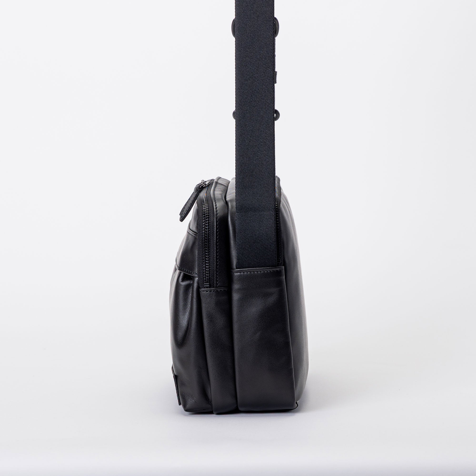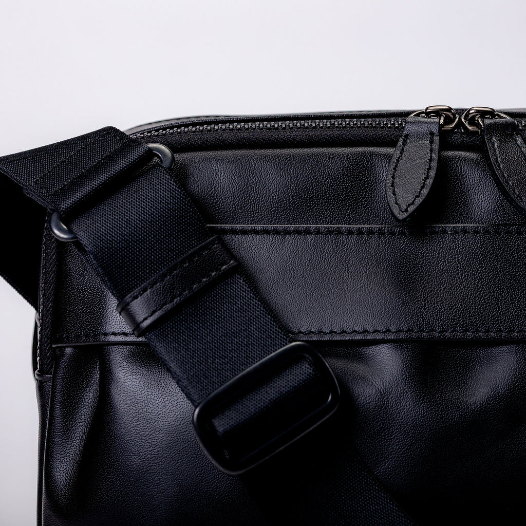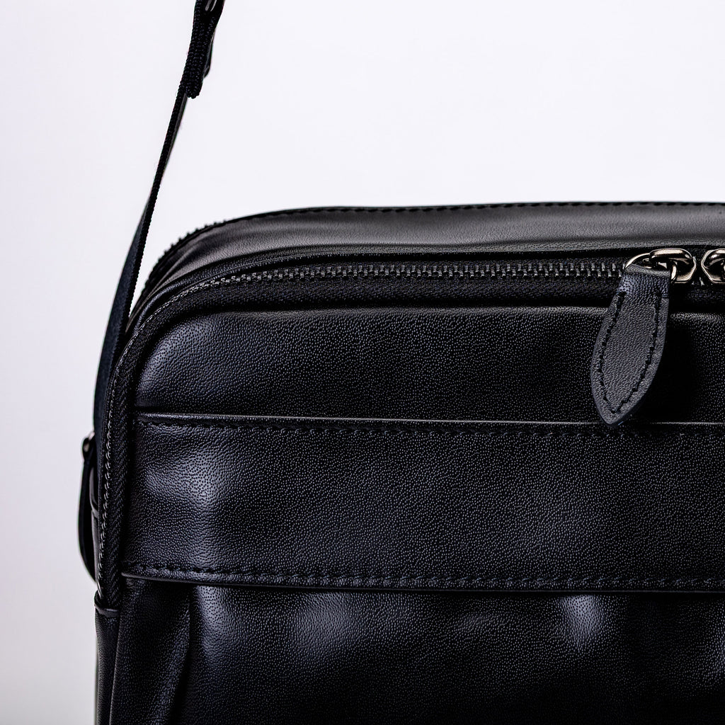 日常の動きをスマートに整える、機能美を備えたショルダーバッグ。しなやかで上質なレザーを使用し、無駄のない横型フォルムに仕立てました。コンパクトな見た目ながら、身体に自然と沿うサイズ感で、街歩きや移動の多い一日に心地よくフィットします。
