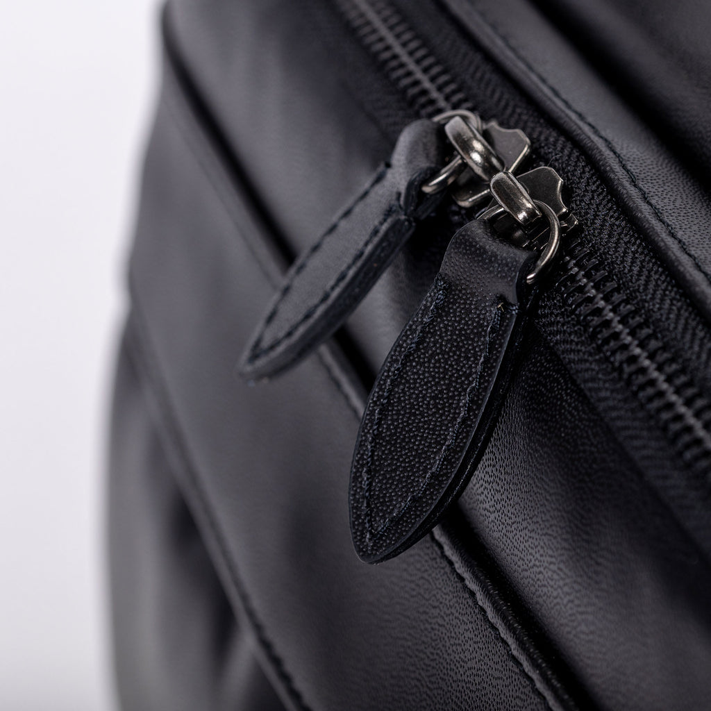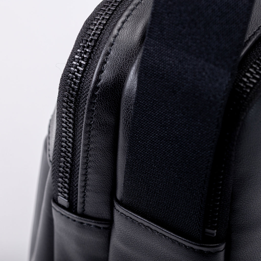 収納は使う人の動線を考え抜いた設計。外側には出し入れしやすいポケットを2つ配置し、スマートフォンやパスケースなど頻繁に使うアイテムをすぐに取り出せます。内側は2部屋構造となっており、それぞれに2つずつポケットを備えることで、荷物を用途別に整理可能。財布、ガジェット、小物類が混在せず、バッグの中を常に整えられます。
